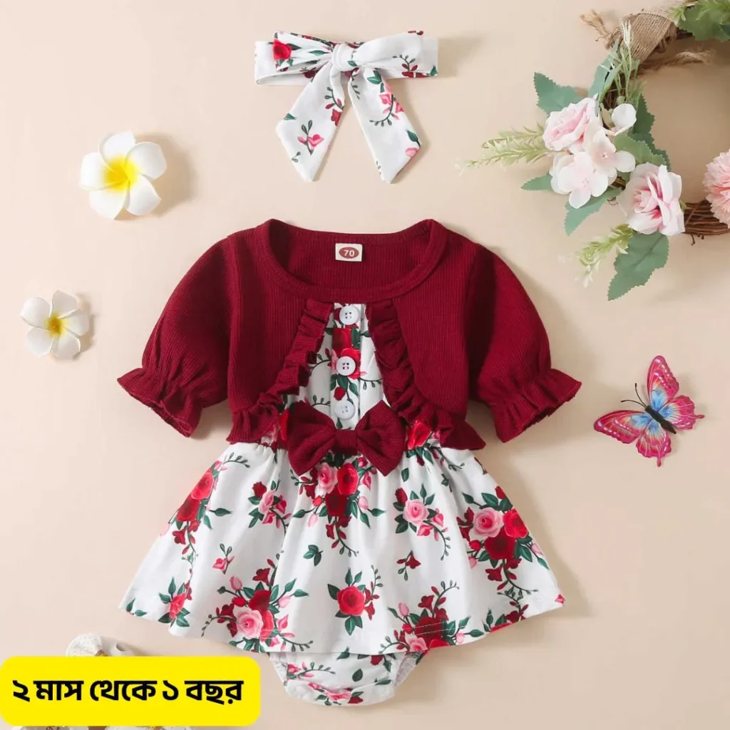 🌸 ফেলালিন ফুল প্রিন্টেড বেবি ড্রেস সেট (Code: FL55) 🌸