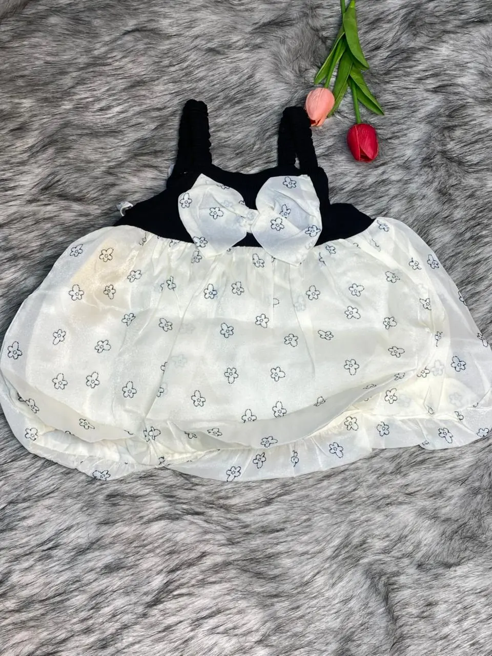 Your little princess will look absolutely adorable in this elegant black and white baby party dress. Designed with a big front bow and soft net skirt, this frock is perfect for birthdays, parties and photoshoots.