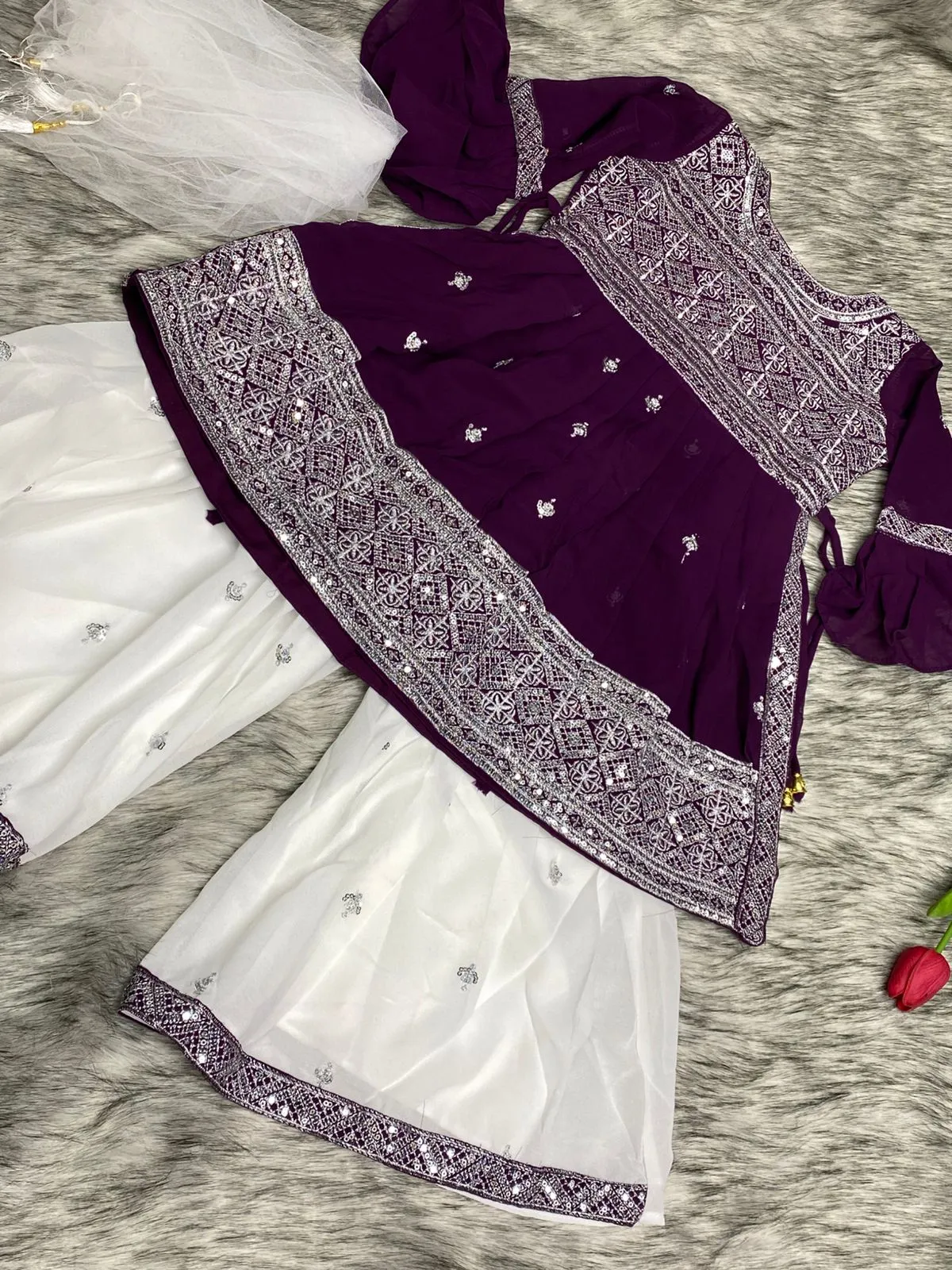 • Kurti: Soft Georgette with Premium Embroidery & Inner Lining