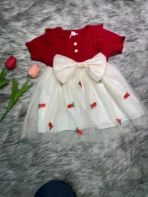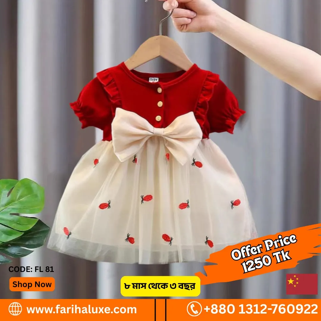 | বই | Red & White Stoberry Bow Baby China Dress- CODE-81 |